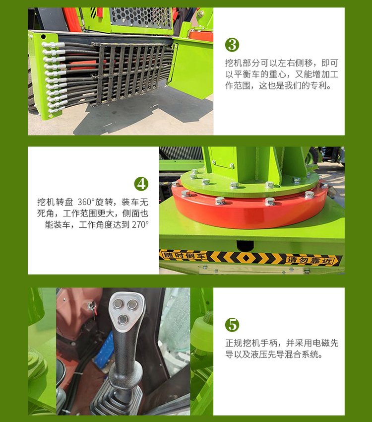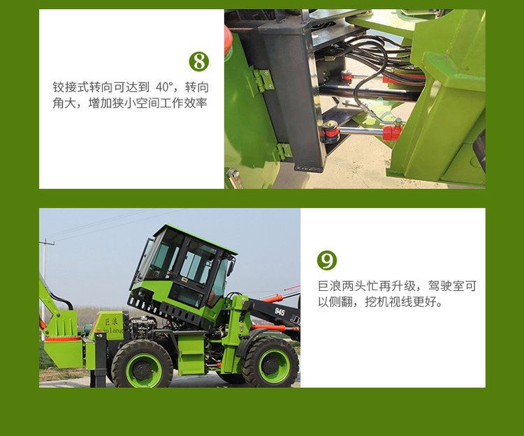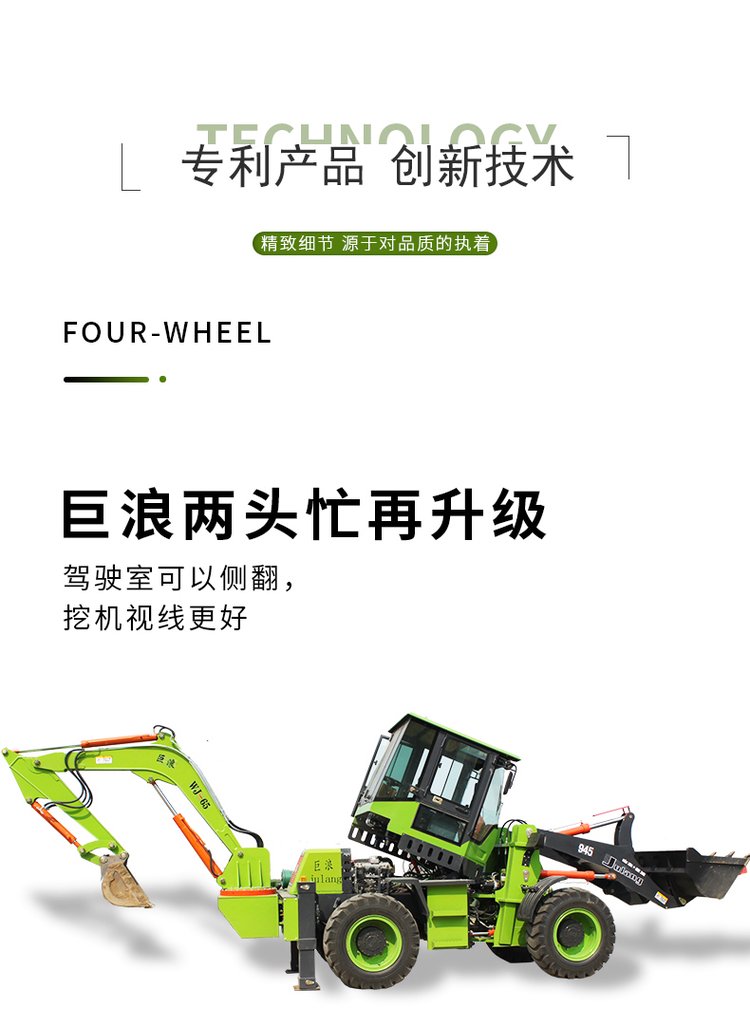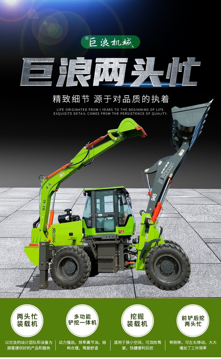 連接復(fù)合動(dòng)作一拖二操作手柄,簡介易操作由于它具有共同的結(jié)構(gòu),前端是裝載設(shè)備,后端為發(fā)掘設(shè)備。在施工時(shí),操作手只需求翻滾一下座椅,就可以結(jié)束從裝載機(jī)到發(fā)掘機(jī)的改動(dòng)。鏟挖一體機(jī)首要用于城市和村莊的公路制作及維護(hù)、電纜鋪設(shè)、電力和機(jī)場工程、市政制作、農(nóng)田水利制作、村莊住宅制作、開山取石以及各種小型建筑隊(duì)所從事的各種建筑施工工程?!皟深^忙”歸于小型多功能工程機(jī)械的一種,一般在大工程結(jié)束后的小工程中運(yùn)用。它可配多種作業(yè)設(shè)備及輔具,進(jìn)行發(fā)掘、鏟裝、路面破碎、平整場所、開挖水溝、鋪設(shè)管道等多種作業(yè)。